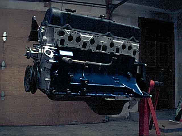 Another thing to get is a gasket kit. Felpro makes them for the L-series sixes, and I think Mr. Gasket too. Buy some gasket sealer and high temp silicon to seal all the gaskets (some don't require sealer(ie head gasket), so see the manuals). NAPA carries a lot of good brush on gasket sealers. Basically, just follow the How to Rebuild Your Nissan/Datsun OHC Engine book. It has everything you need to know about assembling the engine. Here are a couple of low-quality pics of my engine during the preparation process. The blue paint is New Ford Blue or something like that. This is the darker Ford engine paint. It is kind of similar to the original paint: