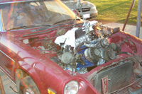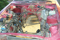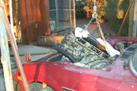 of the car cut open, I could finally put a wrench on the engine to